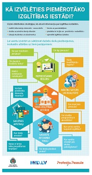 Izpētot infografikas, tu saņemsi atbildes uz būtiskiem jautājumiem par turpmākās izglītības un karjeras izvēli, piemēram: